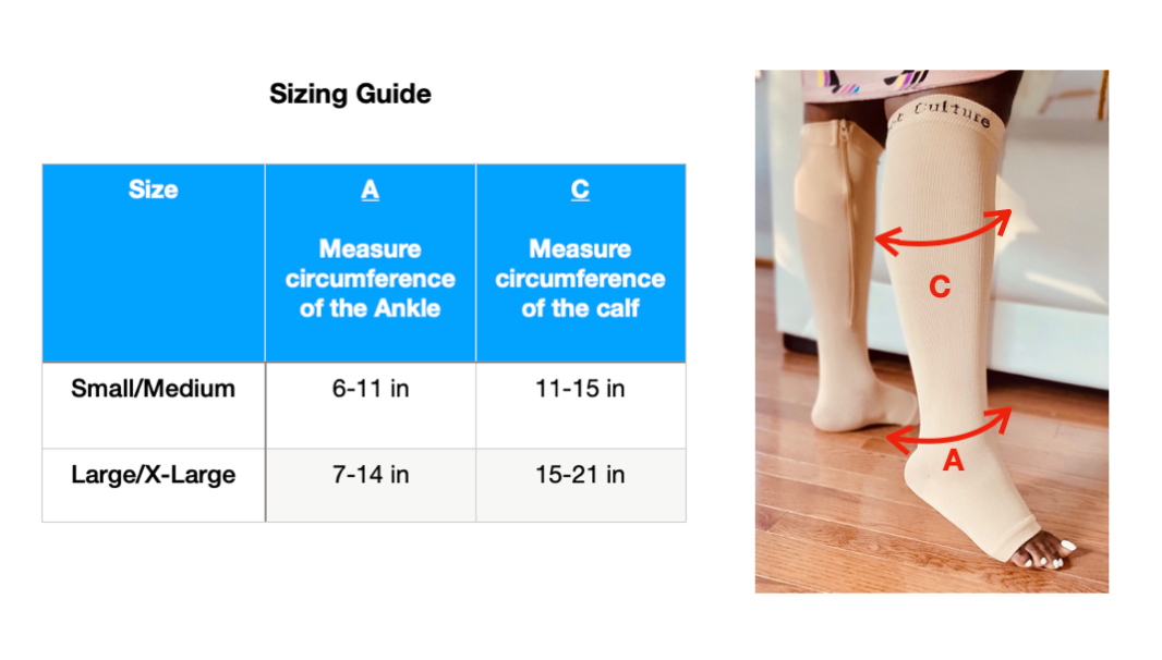 The zipper design allows for easy way of application, giving the needed compression to help the veins and improve swelling.